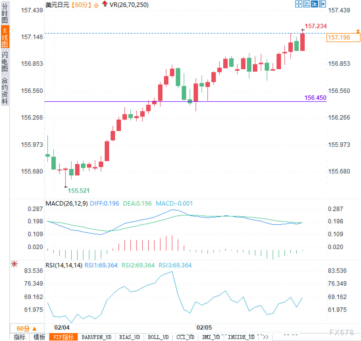 与此同时,下方支撑则集中在156.450附近,这个位置不仅是前期整理平台的核心区域,也是多头能否守住强势结构的关键分水岭。一旦失守,行情可能回落至156.20甚至156.00区域进行重新平衡,届时短期趋势的强度将明显减弱。RSI目前位于69.364,已接近超买区域,暗示短期内多头占优的同时,追涨的风险也在上升。分析指出,在这种高位环境下,若价格在157.20上方迟迟无法有效放量突破,反而出现震荡或回落,并不令人意外。