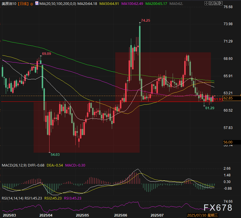 周四(8月21日)亚市早盘,美原油10月期货合约小幅上涨0.24%尝试挑战近期高档区域,目前交投于62.86美元/桶附近,周三油价一度上涨1.7%,主要受全球供应潜在中断担忧催生的买盘推动。当前,买盘压力小幅回升引发市场波动性加剧,投资者重点追踪乌克兰局势——若当地紧张态势进一步升级,可能触发对俄新制裁,进而扰乱全球原油运输链路。短期内,若供应端风险预期持续发酵,油价有望重拾看涨动能。