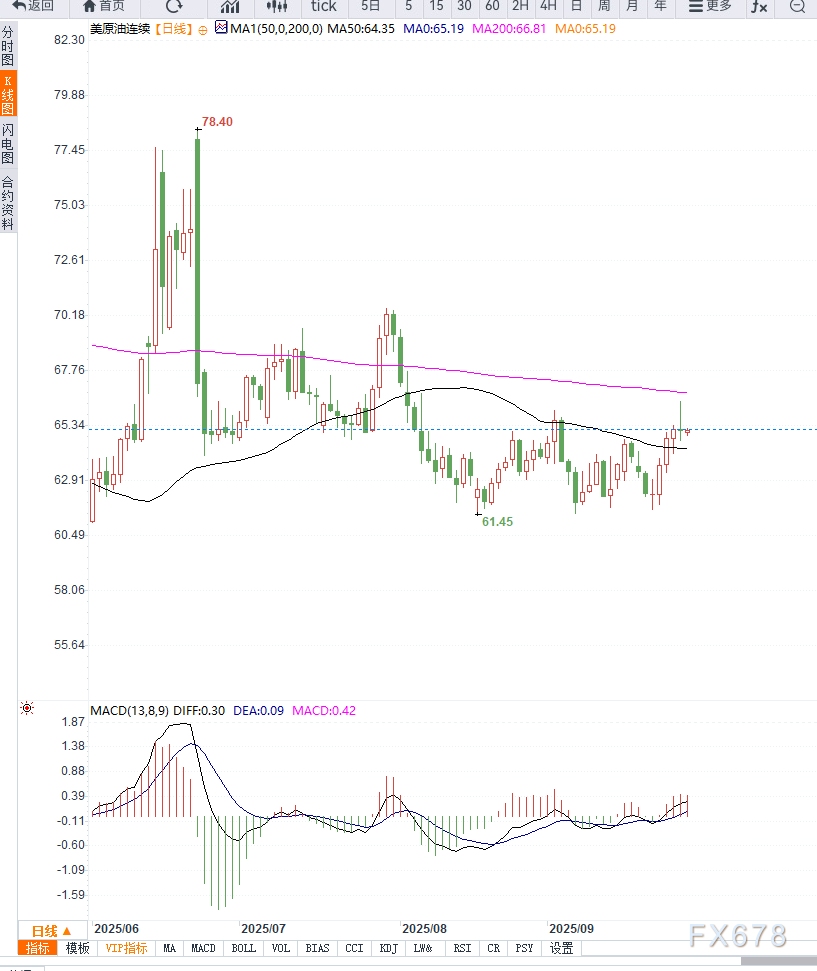 若价格能够守住63.50美元的支撑区间,仍有望再度冲击66.80美元的前期高点;若跌破该支撑,则可能回测62美元附近。整体结构上,均线系统逐步走平,显示行情可能进入震荡整理阶段。